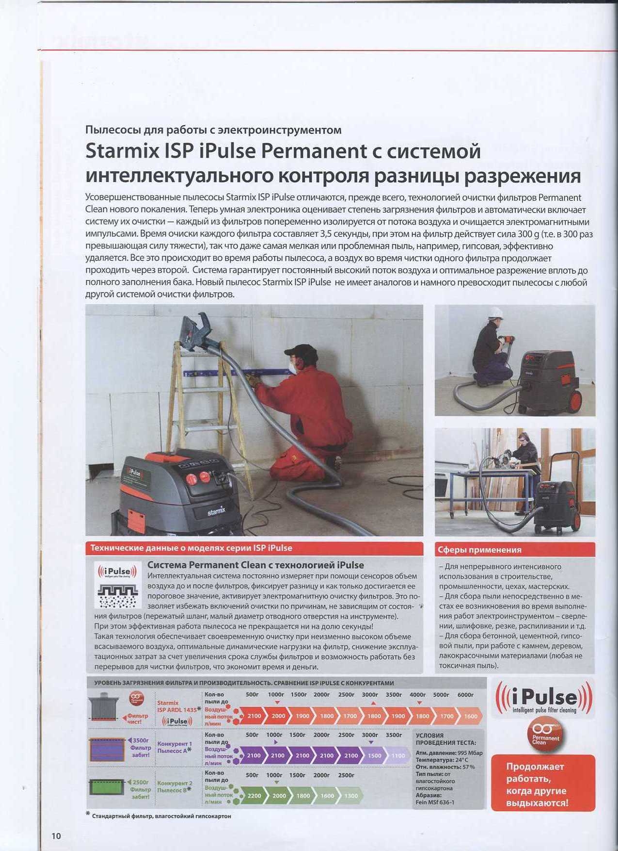 Данная модель пылесоса производства компании Starmix, Германия предназначена для промышленного использования, когда необходимо собирать пыль и одновременно работать с электроинструментом (работа со штроборезом, перфоратором и д.р.) Используется на стройплощадках, промышленных объектах, сфере ЖКХ и др.